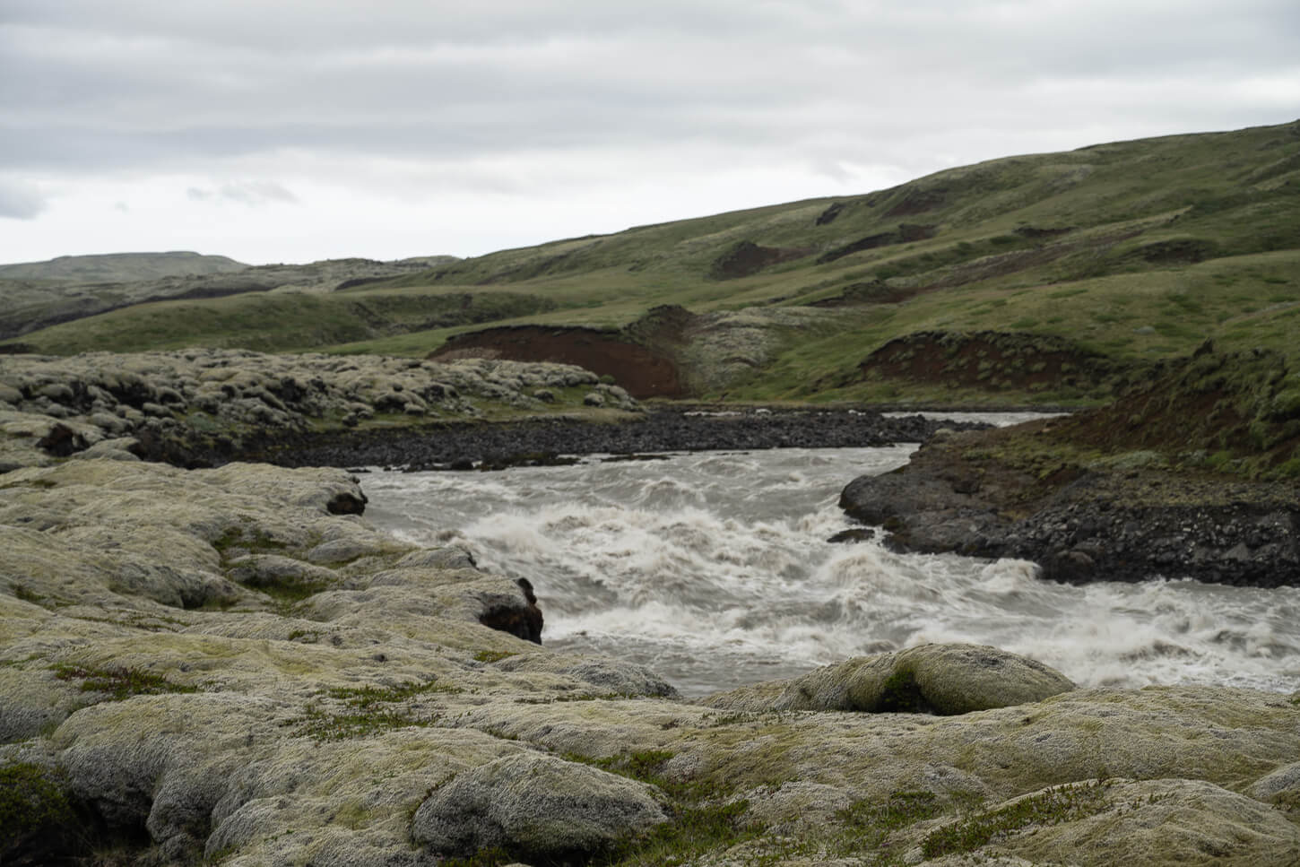 It’s a long walk across a seemingly endless lava field. The trail offers a peek into the Hverfisfljót river now and then for a change in the landscape. Hverfisfljót is a river of glacial origin; it’s rich in silt and extremely powerful. Kind of Hypnotic to watch.
